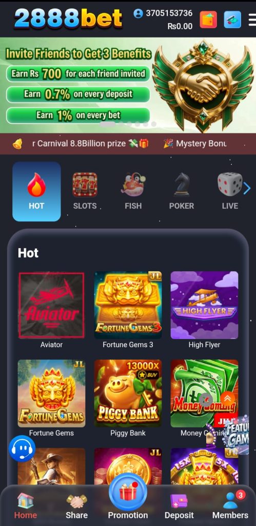 The 2888Bet Game is a mobile casino platform designed mainly for Android users in Pakistan. It offers slot machines, card games, and other fast casino games in one lightweight app. Players can deposit small amounts and try their luck while enjoying smooth gameplay. The app focuses on simplicity. The interface is clean and easy to understand. Even first-time users can navigate without confusion. You get daily rewards, quick payment options, and beginner-friendly controls.